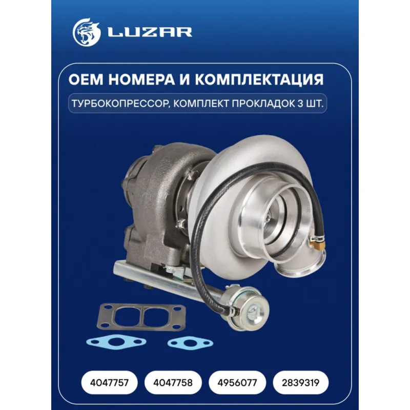 Турбокомпрессор для а/м КАМАЗ c дв. Cummins 6ISBe/6ISDe Euro-4/5 Характеристики: Артикул: LAT 0734 OEM номера: 4047757, 4047758, 4956077, 2839319 Количество на автомобиль: 1 Тип картриджа: HE351W Сопутствующий товар: Актуатор: LTC 0734 Сопутствующий товар: Картридж: LAT 5002 Сопутствующий товар: Набор монтажный: LTC 07331 Подходит для авто: КамаАЗ 65115, 65116, 65117, 4308, 43253, 5308 Для проверки применяемости отправьте VIN автомобиля через вкладку "Есть вопросы о товаре?" Комплектация: Турбокомпрессор - 1 шт Комплект прокладок - 3 шт Паспорт изделия - 1 шт Гарантия: от 1 года.
