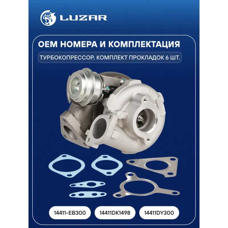 Турбокомпрессор для а/м Nissan Pathfinder(05-)/Navara (05-) 2.5D [YD25DDTi] (тип GT2056V) Характеристики: Артикул: LAT 1401 OEM номера: 14411-EB300, 14411DK1498, 14411DY300 Количество на автомобиль: 1 Сопутствующий товар: Актуатор: LTC 1401 Сопутствующий товар: Набор монтажный: LTC 14011 Применяемость: YD25DDTi Подходит для авто: Nissan Navara (05-), Pathfinder R51 (05-) Для проверки применяемости отправьте VIN автомобиля через вкладку "Есть вопросы о товаре?" Комплектация: Турбокомпрессор - 1 шт Комплект прокладок - 6 шт Паспорт изделия - 1 шт Гарантия: от 1 года.