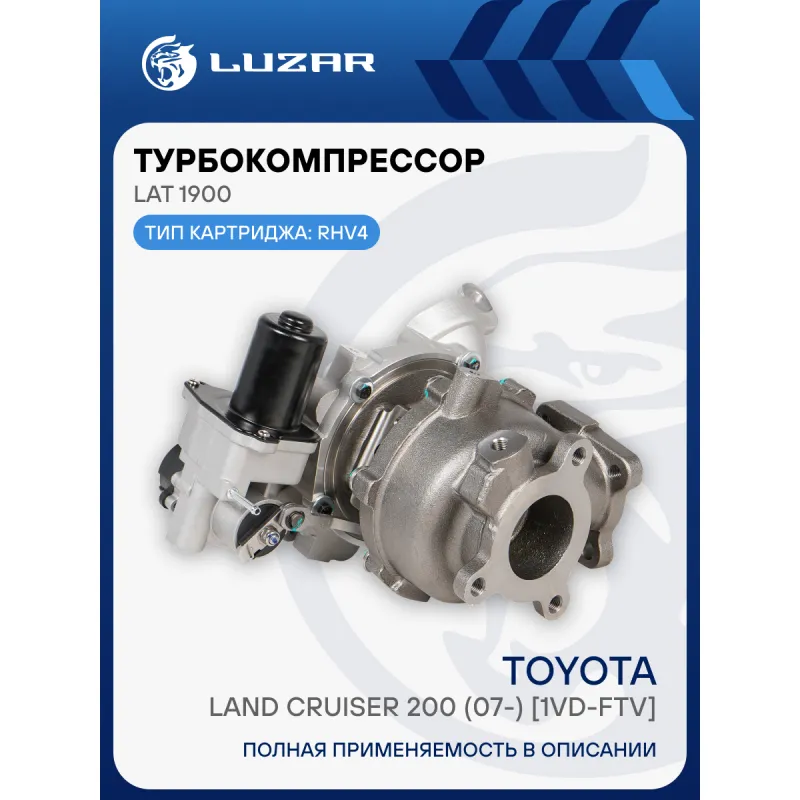 Турбокомпрессор для а/м Toyota Land Cruiser 200 (07-) 4.5D [1VD-FTV] (тип RHV4) (левый) Характеристики: Артикул: LAT 1900 OEM номера: 17208-51011, 17208-51010 Количество на автомобиль: 1 Применяемость: 1VD-FTV Тип картриджа: RHV4 Сопутствующий товар: Радиаторы интеркулера (онв): LRIC 1920 Подходит для авто: Toyota Land Cruise... Читать полностью →
