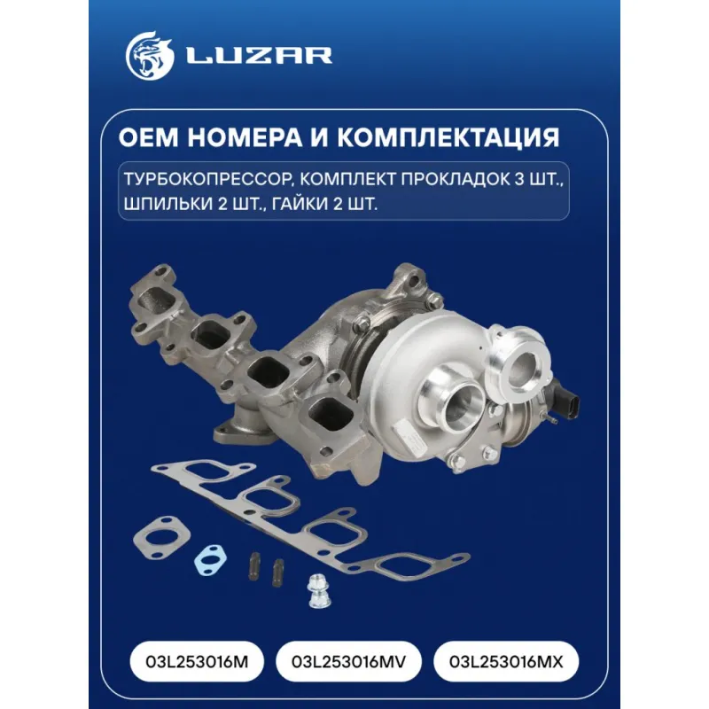 Турбокомпрессор для а/м VW Transporter T5 (09-)/Multivan T5 (09-) 2.0D (тип GTB1446VZ) Характеристики: Артикул: LAT 1871 OEM номера: 03L253016M, 03L253016MV, 03L253016MX Количество на автомобиль: 1 Применяемость: CAAA,CAAB,CAAC,CCHE,CCHA,CCHB Подходит для авто: Volkswagen Transporter T5 (03-), Transporter T6 (15-), Multivan (03-), Multivan T6 (15-) Для проверки применяемости отправьте VIN автомобиля через вкладку "Есть вопросы о товаре?" Комплектация: Турбокомпрессор - 1 шт Комплект прокладок - 3 шт Шпильки - 2 шт Гайки - 2 шт Паспорт изделия - 1 шт Гарантия: от 1 года.