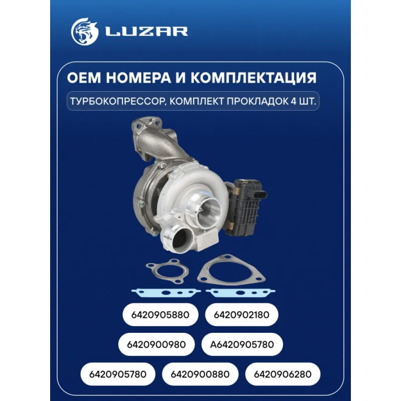 Турбокомпрессор для автомобилей Mercedes-Benz ML/GL (05-) 3.0D [OM642] (тип GTB2056VK) Характеристики: Артикул: LAT 1500 OEM номера: 6420905780, 6420900880, 6420906280, 6420905880, 6420902180, 6420900980, A6420905780 Количество на автомобиль: 1 Применяемость: OM 642.820/OM 642.870/OM 642.872/OM 642.910/OM 642.920/OM 642.921/OM 642.940/OM 642.950 Подходит для авто: Mercedes-Benz GL-Class I (X164) (06-), M-Class II (W164) (05-) Для проверки применяемости отправьте VIN автомобиля через вкладку "Есть вопросы о товаре?" Комплектация: Турбокомпрессор - 1 шт Комплект прокладок - 4 шт Паспорт изделия - 1 шт Гарантия: от 1 года.