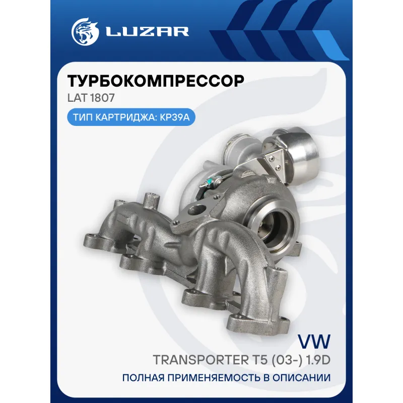 Турбокомпрессор для автомобилей VW Transporter T5 (03-) 1.9D (тип KP39A) Характеристики: Артикул: LAT 1807 OEM номера: 038253010C, 038253010N, 038253014H, 038253019J, 038253056M Количество на автомобиль: 1 Применяемость: AXC/AXB/AXC/BRR/CAAA Тип картриджа: KP39A Сопутствующий товар: Актуатор: LTC 1807 Сопутствующий товар: Набор ... Читать полностью →