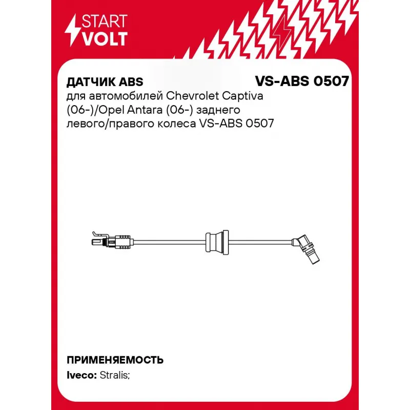 Датчик ABS для автомобилей Chevrolet Captiva (06-)/Opel Antara (06-) заднего левого/правого колеса Характеристики: Артикул: VS-ABS 0507 OEM номера: 96626080, 4809379 Длина провода, мм: 205 Сторона установки: Задняя ось Монтажная глубина, мм: 18,3 Тип датчика ABS: Активный Подходит для авто: Iveco Stralis (03-) Для проверки применяемости отправьте VIN автомобиля через вкладку "Есть вопросы о товаре?" Комплектация: Датчик ABS - 1 шт Паспорт изделия/гарантийный талон - 1 шт Болт - 1 шт Гарантия: от 1 года.