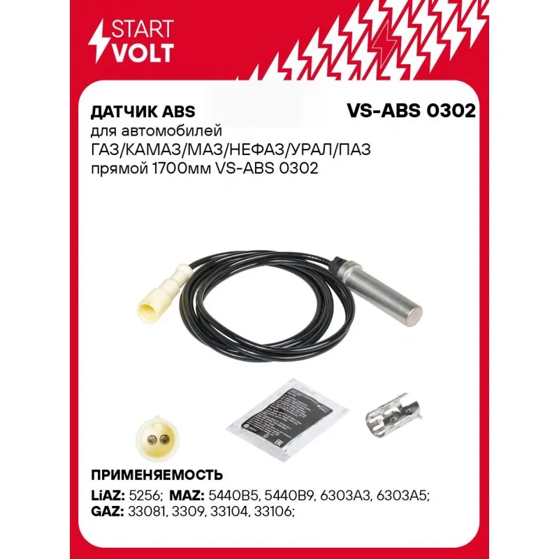 Датчик ABS для автомобилей ГАЗ/КАМАЗ/МАЗ/НЕФАЗ/УРАЛ/ПАЗ прямой 1700мм VS-ABS 0302 StartVolt