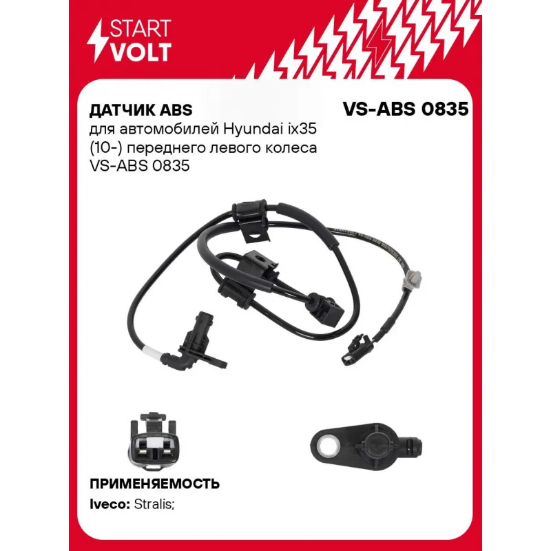 Датчик ABS для автомобилей Hyundai ix35 (10-) переднего левого колеса Характеристики: Артикул: VS-ABS 0835 OEM номера: 956702S300 Сторона установки: Переднее левое колесо Монтажная глубина, мм: 28 Тип датчика ABS: Активный Подходит для авто: Iveco Stralis (03-) Для проверки применяемости отправьте VIN автомобиля через вкладку "Есть вопросы о товаре?" Комплектация: Паспорт изделия/гарантийный талон - 1 шт Датчик ABS - 1 шт Гарантия: от 1 года.