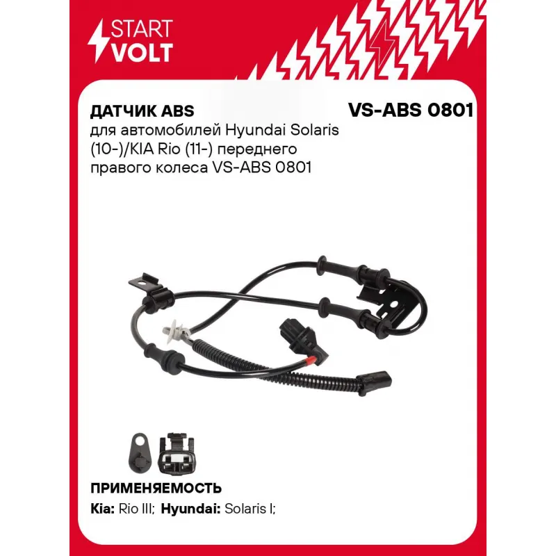 Датчик ABS для автомобилей Hyundai Solaris (10-)/KIA Rio (11-) переднего правого колеса Характеристики: Артикул: VS-ABS 0801 OEM номера: 95671-1R000 Сторона установки: Переднее правое колесо Длина провода, мм: 925 Тип датчика ABS: Активный Монтажная глубина, мм: 15,5 Подходит для авто: Kia Rio III (11-) Hyundai Solaris I (10-... Читать полностью →