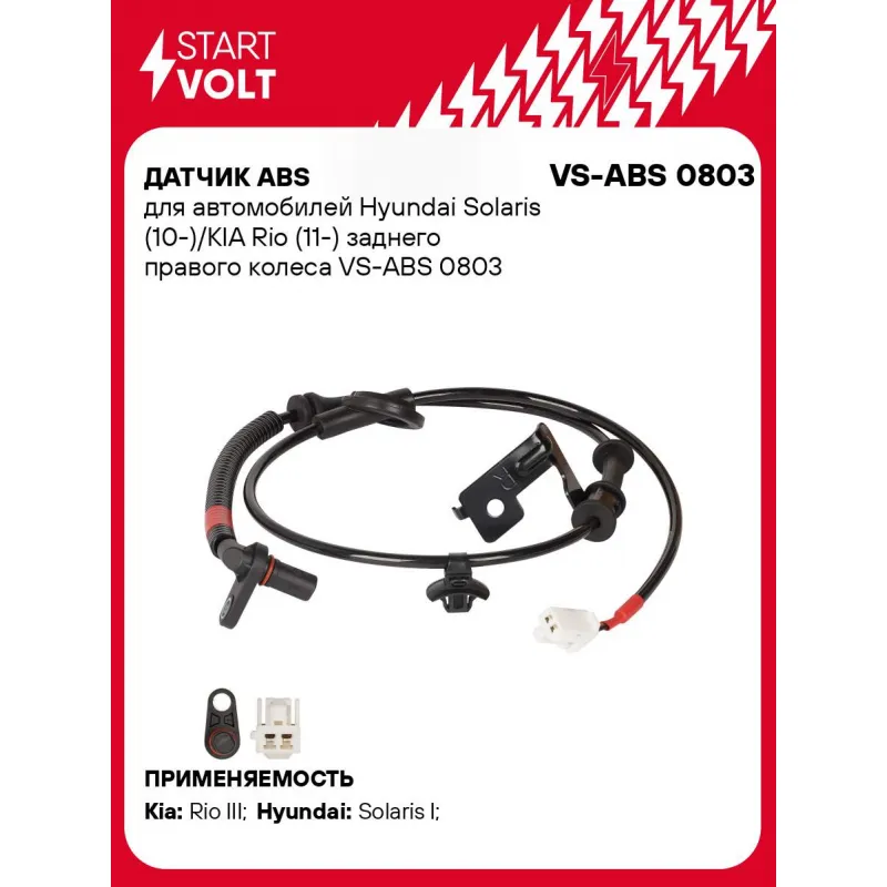 Датчик ABS для автомобилей Hyundai Solaris (10-)/KIA Rio (11-) заднего правого колеса Характеристики: Артикул: VS-ABS 0803 OEM номера: 95681-1R000, 956810U000 Сторона установки: Заднее правое колесо Длина провода, мм: 885 Тип датчика ABS: Активный Монтажная глубина, мм: 21,4 Подходит для авто: Kia Rio III (11-) Hyundai Solaris I (10-) Для проверки применяемости отправьте VIN автомобиля через вкладку "Есть вопросы о товаре?" Комплектация: Паспорт изделия/гарантийный талон - 1 шт Датчик ABS - 1 шт Гарантия: от 1 года.