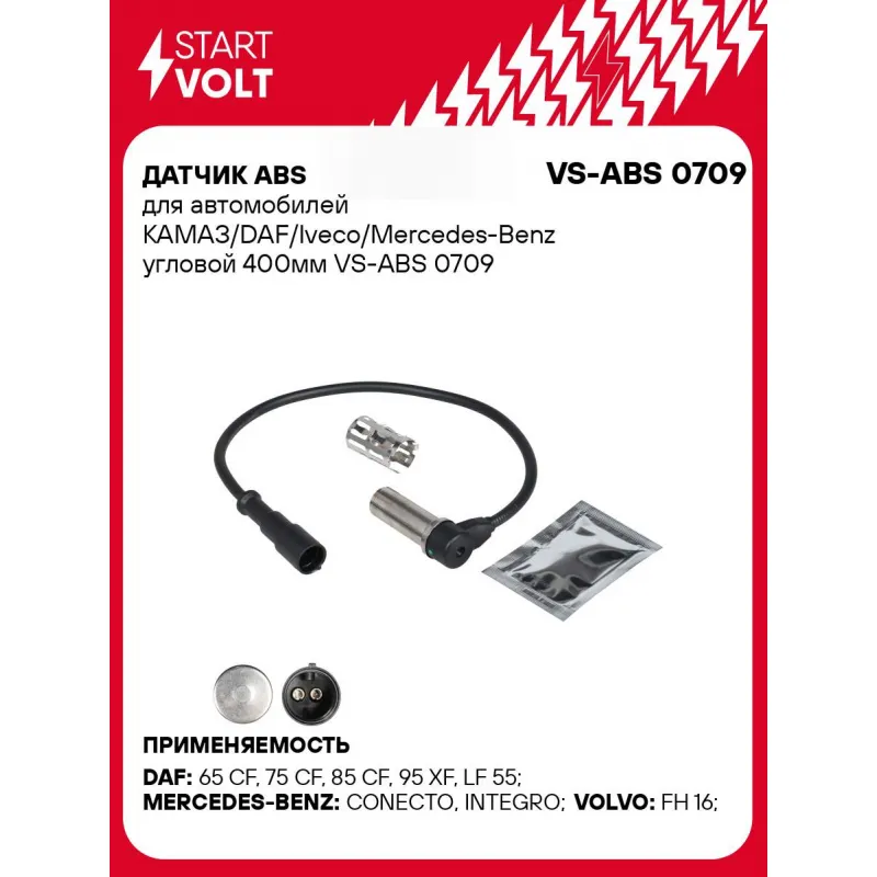 Датчик ABS для автомобилей КАМАЗ/DAF/Iveco/Mercedes-Benz угловой 400мм Характеристики: Артикул: VS-ABS 0709 OEM номера: 1504951, 1315698, 82826, 669713, 1238548, 1506005, 865 038, 876 714, 90 804, 90 805, 0876 714, 1359 834, 1518 724, 1518 728, 1616 874, 220 263, 1778552, 0082826, 0090 804, 0090 805, 0220 263, 0865 038, 5801115879, 9441032808, 42061638, 5006041993, 8235S4410328080, 63004410328080, 81271200021, N2255200061, A0025423118, 0025423118, 6205420217, A002 542 39 18, A004 542 24 16, A004 542 44 18, A301 542 01 17, A620 542 02 17, 002 542 39 18, 004 542 24 16, 004 542 44 18, 301 542 01 17, 479009X403, 5021170122, 5010604322, 5000790125, 5021170125, 1934568, WAB4410328080, 85105998, 1195759, WA4410329212, TDAS4410328080, S4410328080, 692301708, Y507336, 1110276, 1375187, 8031402, Y00002906, 20232518, 355000242, CF102959, 4410329212, 4410328080 Сторона установки: Передняя/Задняя ось Длина провода, мм: 330 Тип датчика ABS: Пассивный Монтажная глубина, мм: 40 Комплектация: Паспорт изделия/гарантийный талон - 1 шт Датчик ABS - 1 шт Смазка литиевая многофункциональная STARTVOLT (стик 5г) - 1 шт Установочная втулка - 1 шт Гарантия: от 1 года.