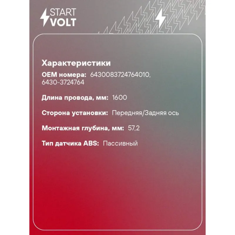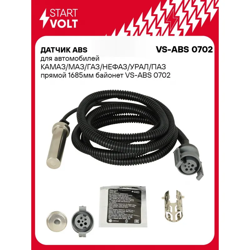 Датчик ABS для автомобилей КАМАЗ/МАЗ/ГАЗ/НЕФАЗ/УРАЛ/ПАЗ прямой 1685мм байонет Характеристики: Артикул: VS-ABS 0702 OEM номера: 6430083724764010, 6430-3724764 Длина провода, мм: 1600 Сторона установки: Передняя/Задняя ось Монтажная глубина, мм: 57.2 Тип датчика ABS: Пассивный Комплектация: Паспорт изделия/гарантийный талон - 1... Читать полностью →