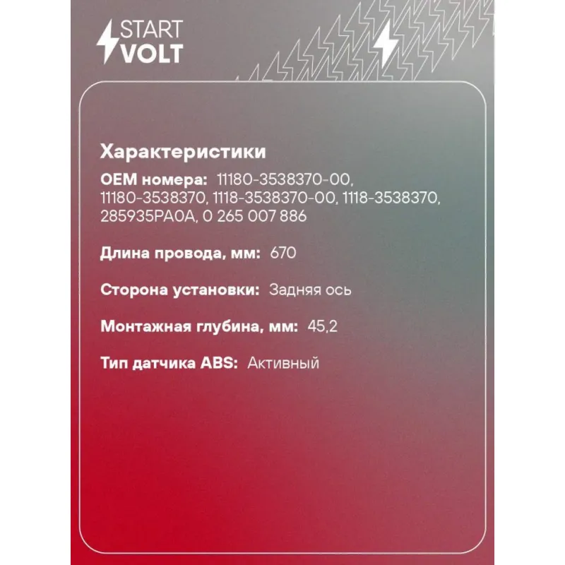 Датчик ABS для автомобилей Лада 1117-1119 Калина/2170-2172 Приора/2190 Гранта заднего левого/правого колеса VS-AB 0172 StartVolt