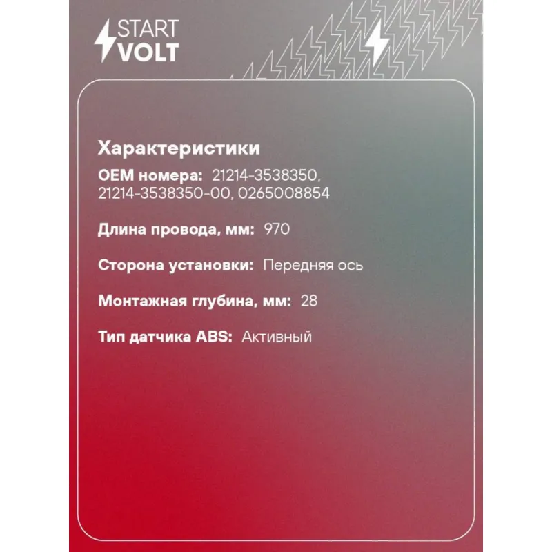 Датчик ABS для автомобилей Лада 21214 Нива 4х4 переднего левого/правого колеса VS-ABS 0126 StartVolt