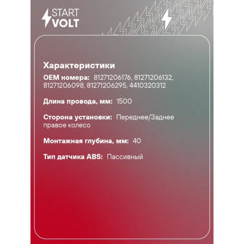 Датчик ABS для автомобилей MAN TGX (06-)/TGA (99-)/TGS (05-) переднего/заднего правого колеса угловой 1500мм Характеристики: Артикул: VS-ABS 2106 OEM номера: 81271206176, 81271206132, 81271206098, 81271206295, 4410320312 Длина провода, мм: 1500 Сторона установки: Переднее/Заднее правое колесо Монтажная глубина, мм: 40 Тип датчик... Читать полностью →