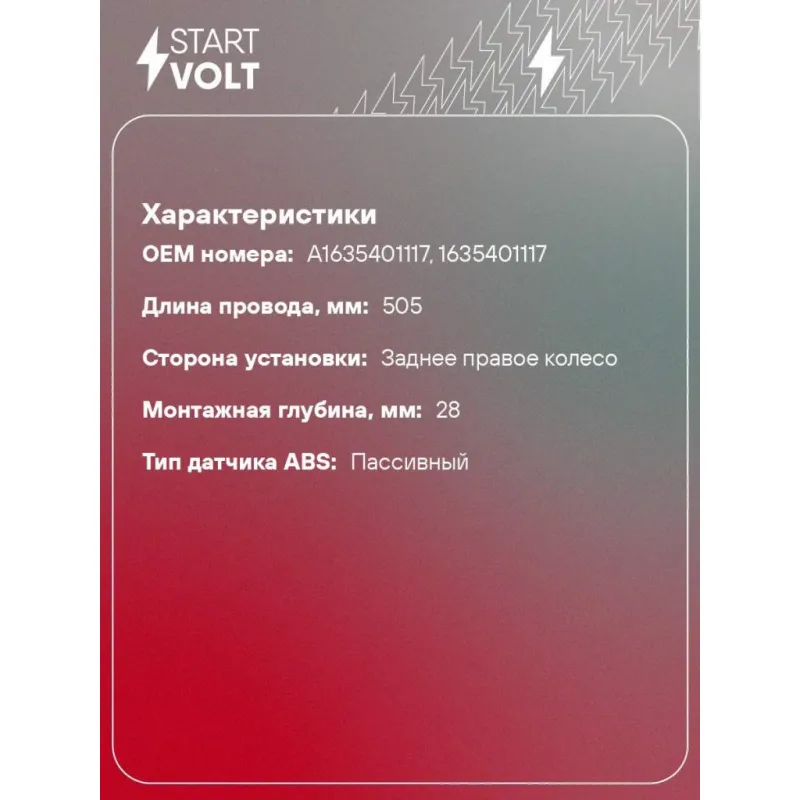 Датчик ABS для автомобилей Mercedes-Benz M W163 (98-) заднего правого колеса Характеристики: Артикул: VS-ABS 2507 OEM номера: A1635401117, 1635401117 Длина провода, мм: 505 Сторона установки: Заднее правое колесо Монтажная глубина, мм: 28 Тип датчика ABS: Пассивный Комплектация: Датчик ABS - 1 шт Паспорт изделия/гарантийный т... Читать полностью →