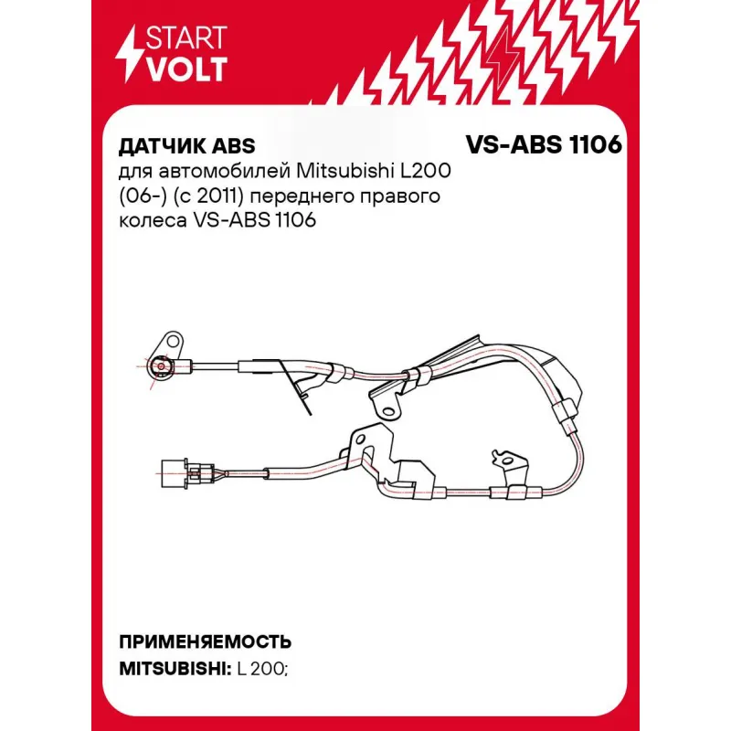 Датчик ABS для автомобилей Mitsubishi L200 (06-) (с 2011) переднего правого колеса Характеристики: Артикул: VS-ABS 1106 OEM номера: 4670A596 Сторона установки: Переднее правое колесо Монтажная глубина, мм: 28,2 Тип датчика ABS: Активный Комплектация: Датчик ABS - 1 шт Паспорт изделия/гарантийный талон - 1 шт Гарантия: от 1 г... Читать полностью →