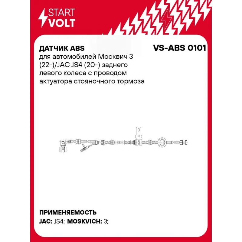 Датчик ABS для автомобилей Москвич 3 (22-)/JAC JS4 (20-) заднего левого колеса с проводом актуатора стояночного тормоза Характеристики: Артикул: VS-ABS 0101 OEM номера: 3565500U3400 Длина провода, мм: 1090 Сторона установки: Заднее левое колесо Тип датчика ABS: Активный Подходит для авто: JAC JS4 (20-) MOSKVICH 3 (22-) Для проверки применяемости отправьте VIN автомобиля через вкладку "Есть вопросы о товаре?" Комплектация: Датчик ABS - 1 шт Паспорт изделия/гарантийный талон - 1 шт Гарантия: от 1 года.