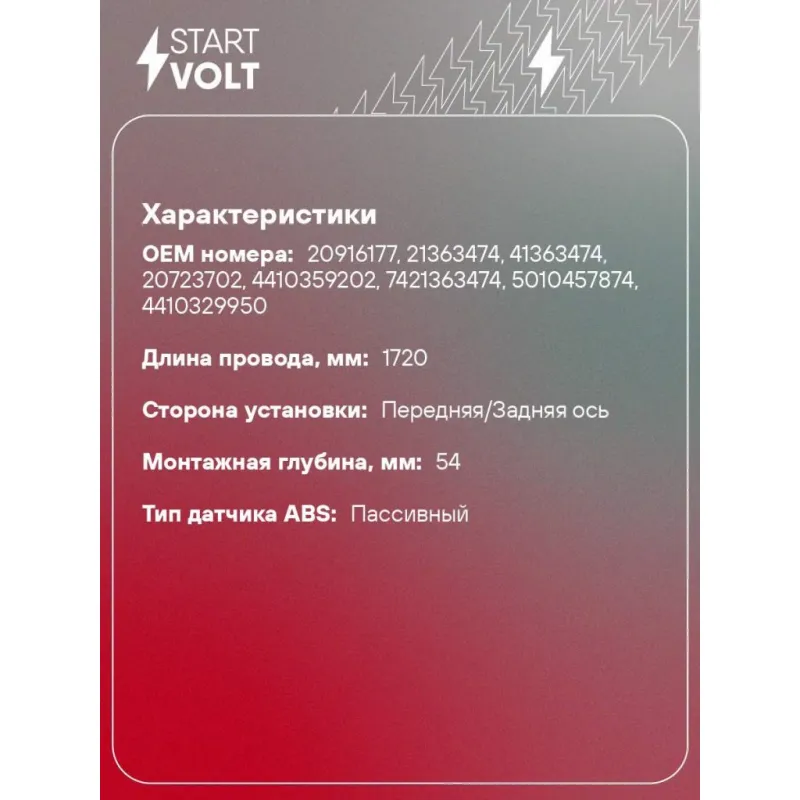 Датчик ABS для автомобилей Renault Trucks Premium (96-)/Premium II (05-) прямой 1720мм Характеристики: Артикул: VS-ABS 0805 OEM номера: 20916177, 21363474, 41363474, 20723702, 4410359202, 7421363474, 5010457874, 4410329950 Длина провода, мм: 1720 Сторона установки: Передняя/Задняя ось Монтажная глубина, мм: 54 Тип датчика ABS: П... Читать полностью →