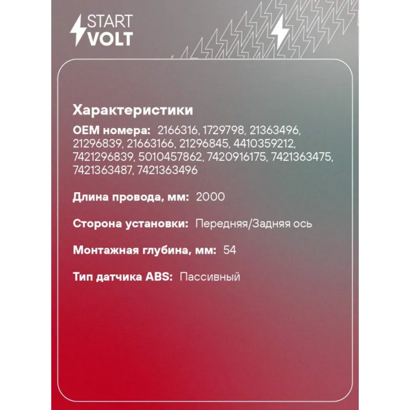 Датчик ABS для автомобилей Renault Trucks Premium II (05-) прямой 2000мм VS-ABS 0911 StartVolt