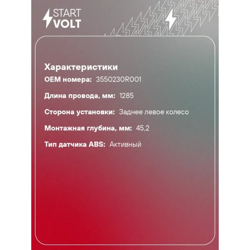 Датчик ABS для автомобилей Sollers Atlant (22-)/JAC Sunray (20-) заднего левого колеса 7 креплений Характеристики: Артикул: VS-ABS 2124 OEM номера: 3550230R001 Длина провода, мм: 1285 Сторона установки: Заднее левое колесо Монтажная глубина, мм: 45.2 Тип датчика ABS: Активный Комплектация: Датчик ABS - 1 шт Паспорт изделия/га... Читать полностью →