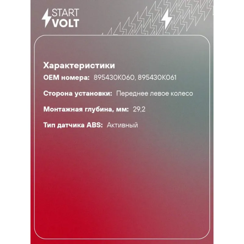 Датчик ABS для автомобилей Toyota Hilux (15-)/Fortuner (15-) переднего левого колеса Характеристики: Артикул: VS-ABS 1924 OEM номера: 895430K060, 895430K061 Сторона установки: Переднее левое колесо Монтажная глубина, мм: 29,2 Тип датчика ABS: Активный Подходит для авто: Iveco Stralis (03-) Для проверки применяемости отправьте VIN автомобиля через вкладку "Есть вопросы о товаре?" Комплектация: Датчик ABS - 1 шт Паспорт изделия/гарантийный талон - 1 шт Гарантия: от 1 года.