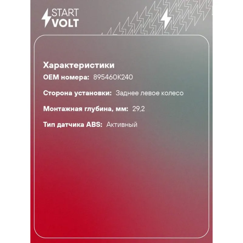 Датчик ABS для автомобилей Toyota Hilux (15-) заднего левого колеса Характеристики: Артикул: VS-ABS 1926 OEM номера: 895460K240 Сторона установки: Заднее левое колесо Монтажная глубина, мм: 29,2 Тип датчика ABS: Активный Подходит для авто: Iveco Stralis (03-) Для проверки применяемости отправьте VIN автомобиля через вкладку "Есть вопросы о товаре?" Комплектация: Датчик ABS - 1 шт Паспорт изделия/гарантийный талон - 1 шт Гарантия: от 1 года.