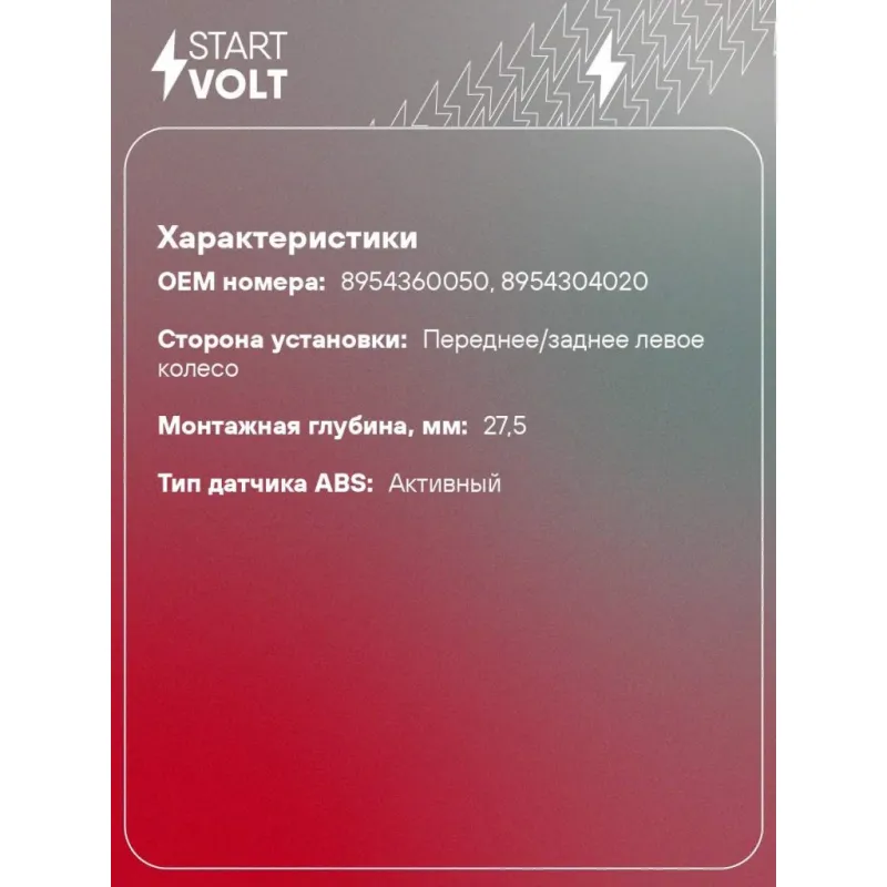 Датчик ABS для автомобилей Toyota Land Cruiser 200 (07-)/LC Prado (09-) переднего/заднего левого колеса VS-ABS 1901 StartVolt