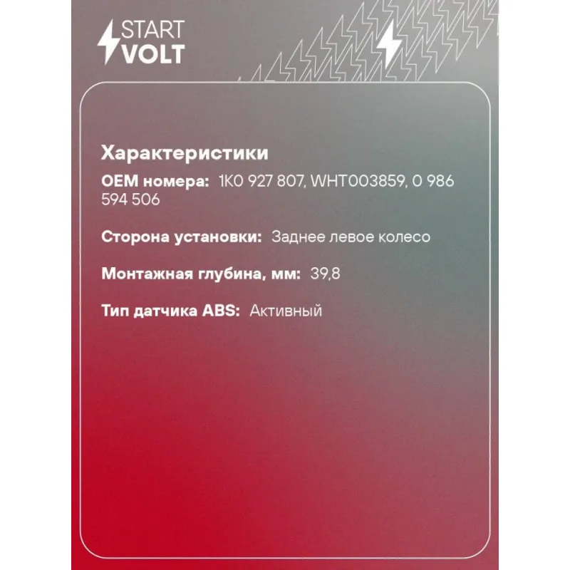 | Сторона установки | Заднее левое колесо |