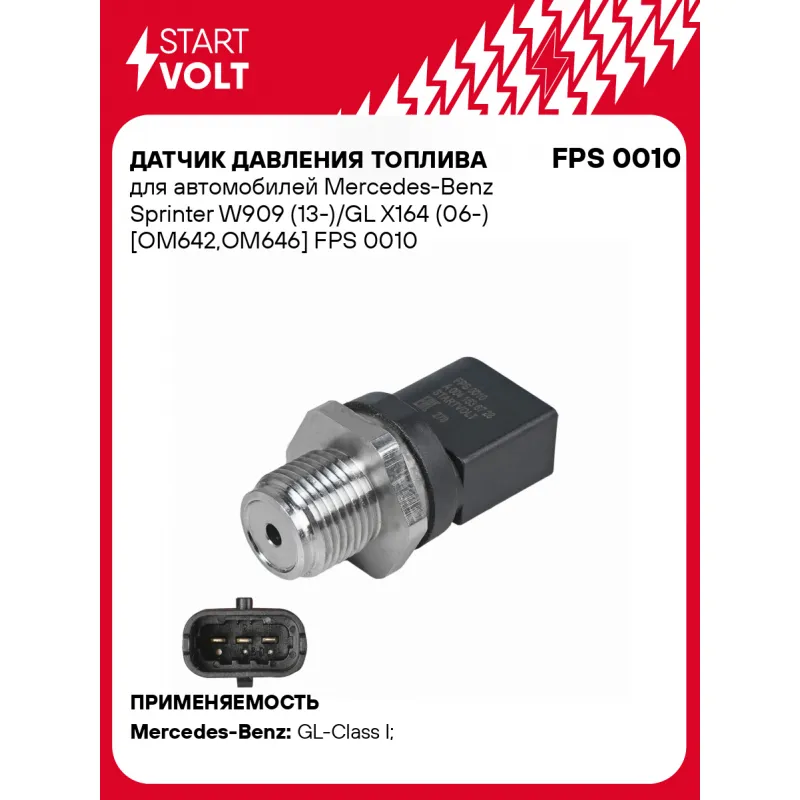 Датчик давления топлива для автомобилей Mercedes-Benz Sprinter W909 (13-)/GL X164 (06-) [OM642,OM646] Характеристики: Артикул: FPS 0010 OEM номера: 13 53 7 794 758, A 004 153 67 28, A 006 153 33 28, A 006 153 65 28, 004 153 67 28, 006 153 33 28, 006 153 65 28, 41536728, 61533328, 61536528, 0281002842 Входное напряжение:: 5 Резьба: M18x1,5 Рабочее давление, бар: 1800 Количество на автомобиль: 1 Подходит для авто: Mercedes-Benz GL-Class I (X164) (06-), M-Class II (W164) (05-), Viano (W639) (03-), Sprinter Classic (13-) Для проверки применяемости отправьте VIN автомобиля через вкладку "Есть вопросы о товаре?" Комплектация: Датчик давления топлива - 1 шт Паспорт изделия/гарантийный талон - 1 шт Гарантия: от 1 года.