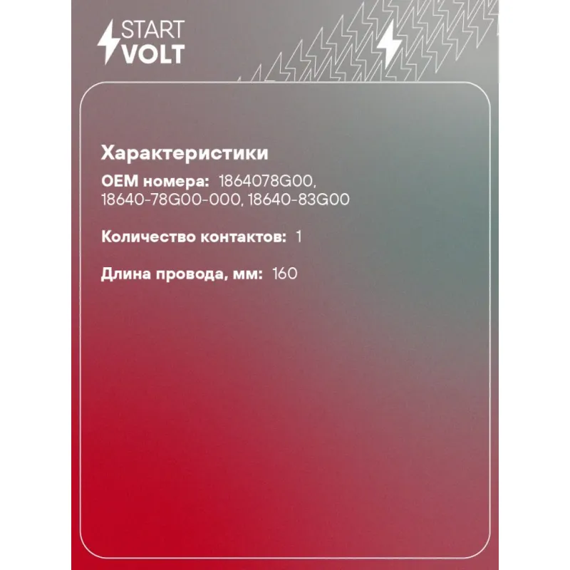 Датчик детонации для автомобилей Suzuki Grand Vitara (05-)/SX4 (07-) 1.6i/2.0i/2.5i Характеристики: Артикул: VS-KS 2401 OEM номера: 1864078G00, 18640-78G00-000, 18640-83G00 Количество контактов: 1 Размер резьбы: M10x1.25 Длина провода, мм: 160 Ширина зева гаечного ключа, мм: 24 Количество на автомобиль: 1 Подходит для авто: Suzuki Grand Vitara (05-) Для проверки применяемости отправьте VIN автомобиля через вкладку "Есть вопросы о товаре?" Комплектация: Датчик детонации - 1 шт Паспорт изделия/гарантийный талон - 1 шт Гарантия: от 1 года.