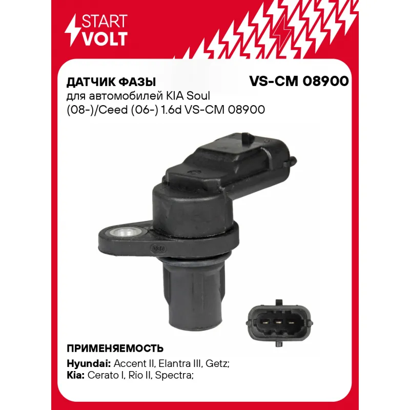 Датчик фазы для автомобилей KIA Soul (08-)/Ceed (06-) 1.6d Характеристики: Артикул: VS-CM 08900 OEM номера: 39300-2A000 Количество контактов: 3 Монтажная глубина, мм: 23.9 Количество на автомобиль: 1 Подходит для авто: Hyundai Accent II (99-), Elantra III (00-), Getz (02-) Kia Cerato I (04-), Rio II (05-), Spectra (00-) Для проверки применяемости отправьте VIN автомобиля через вкладку "Есть вопросы о товаре?" Комплектация: Датчик фазы - 1 шт Паспорт изделия/гарантийный талон - 1 шт Гарантия: от 1 года.