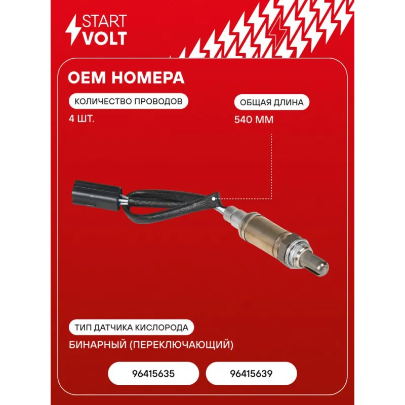 Датчик кислорода для автомобилей Daewoo Matiz (00-)/Chevrolet Spark (05-) 0.8i до катализатора Характеристики: Артикул: VS-OS 0554 OEM номера: 96415635, 96415639 Количество на автомобиль: 1 Тип датчика кислорода: Бинарный (переключающий) Общая длина, мм: 540 Количество проводов: 4 Подходит для авто: Chevrolet Matiz (98-), Spark (05-) Daewoo Matiz (05-) Для проверки применяемости отправьте VIN автомобиля через вкладку "Есть вопросы о товаре?" Комплектация: Паспорт изделия/гарантийный талон - 1 шт Датчик кислорода - 1 шт Гарантия: от 1 года.