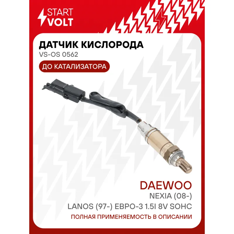 Датчик кислорода для автомобилей Daewoo Nexia (08-)/Lanos (97-) ЕВРО-3 1.5i 8V SOHC до катализатора Характеристики: Артикул: VS-OS 0562 OEM номера: J3240083, 03240 083, 3240083, 0 258 002 028, F 00H L00 091, 96377500, 19211435, 25 165 116, 5613719, 25106169, 25106107, 25165119, 25347721, 5613693, 5613694, 8991739, 96394000 Количество на автомобиль: 1 Тип датчика кислорода: Бинарный (переключающий) Общая длина, мм: 375 Количество проводов: 2 Подходит для авто: Chevrolet Lanos (97-), Aveo T255 (08-), Aveo T250 (06-), Lanos (97-), Lacetti (02-), Aveo T200 (02-) Daewoo Nexia new (08-), Lanos (97-) ЗАЗ Chance (09-) Для проверки применяемости отправьте VIN автомобиля через вкладку "Есть вопросы о товаре?" Комплектация: Кислородный датчик - 1 шт Паспорт изделия/гарантийный талон - 1 шт Гарантия: от 1 года.