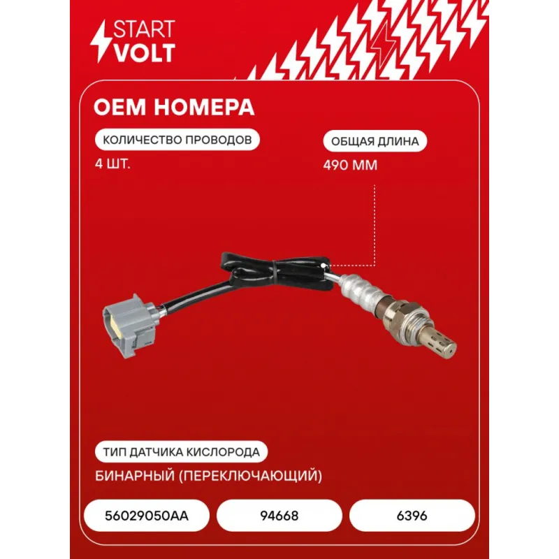 Датчик кислорода для автомобилей Dodge Caravan (01-)/PT Cruiser (00-) 2.4i Характеристики: Артикул: VS-OS 0302 OEM номера: 56029050AA, 94668, 6396 Общая длина, мм: 490 Количество проводов: 4 Тип датчика кислорода: Бинарный (переключающий) Количество на автомобиль: 1 Подходит для авто: Dodge Caravan IV (01-), Stratus (01-) Chrysler 300C (04-), Voyager IV (01-), PT-Cruizer (00-), Sebring II (01-) Для проверки применяемости отправьте VIN автомобиля через вкладку "Есть вопросы о товаре?" Комплектация: Паспорт изделия/гарантийный талон - 1 шт Датчик кислорода - 1 шт Гарантия: от 1 года.