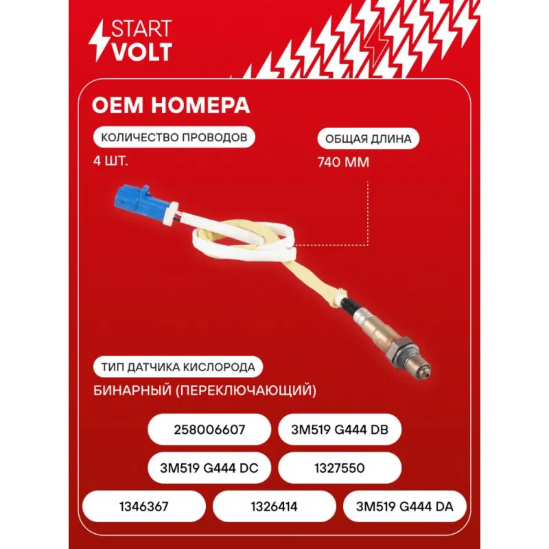 Датчик кислорода для автомобилей Ford Focus II (04-)/Focus III (11-) 1.6i после катализитора 740 мм Характеристики: Артикул: VS-OS 1001 OEM номера: 1346367, 1326414, 3M519 G444 DA, 3M519 G444 DC, 1327550, 3M519 G444 DB, 0258006607, 0 258 986 744 Количество на автомобиль: 1 Тип датчика кислорода: Бинарный (переключающий) Общая длина, мм: 740 Количество проводов: 4 Подходит для авто: Ford C-Max (11-), Focus II (05-), Focus III (11-) Для проверки применяемости отправьте VIN автомобиля через вкладку "Есть вопросы о товаре?" Комплектация: Датчик кислорода - 1 шт Паспорт изделия/гарантийный талон - 1 шт Гарантия: от 1 года.
