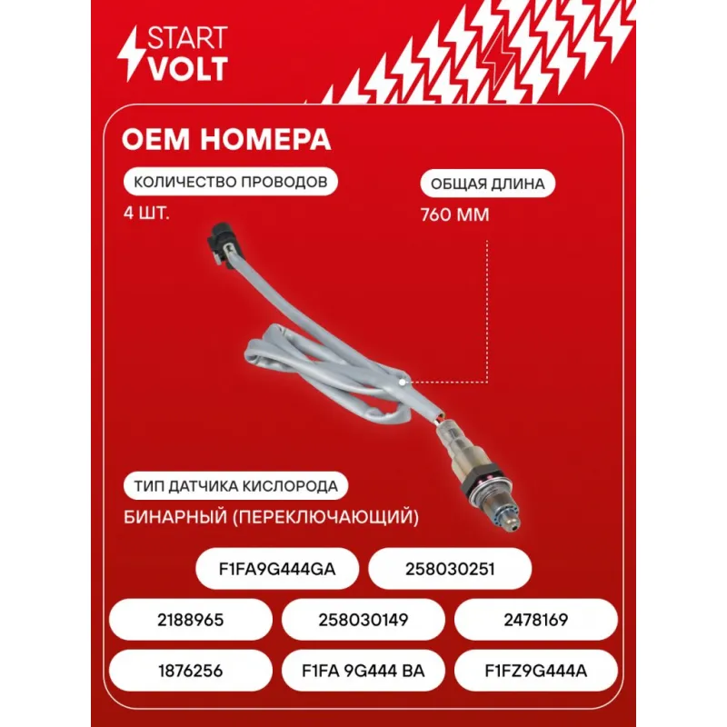 Датчик кислорода для автомобилей Ford Kuga (13-)/Focus (11-) 1.5T после катализатора Характеристики: Артикул: VS-OS 1019 OEM номера: 1876256, F1FA 9G444 BA, F1FZ9G444A, 2188965, 0258030149, 2478169, F1FA9G444GA, 0258030251 Общая длина, мм: 760 Количество проводов: 4 Тип датчика кислорода: Бинарный (переключающий) Количество на автомобиль: 1 Подходит для авто: Ford Focus III (11-), Kuga (13-) Для проверки применяемости отправьте VIN автомобиля через вкладку "Есть вопросы о товаре?" Комплектация: Датчик кислорода - 1 шт Паспорт изделия/гарантийный талон - 1 шт Гарантия: от 1 года.