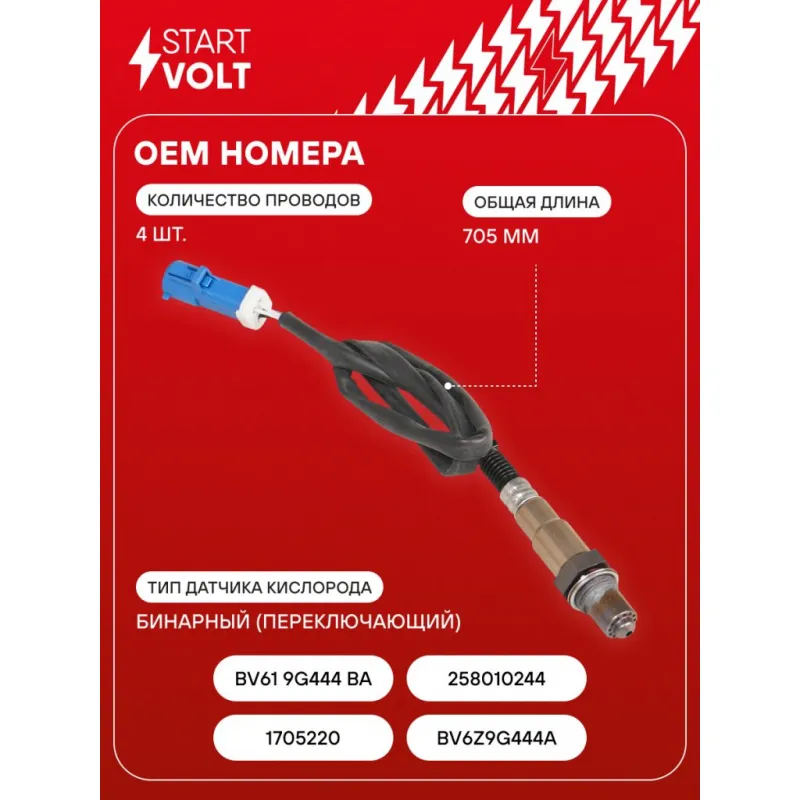 Датчик кислорода для автомобилей Ford Kuga (13-)/Focus (11-) 1.6T после катализатора Характеристики: Артикул: VS-OS 1015 OEM номера: 1705220, BV6Z9G444A, BV61 9G444 BA, 0258010244 Количество на автомобиль: 1 Тип датчика кислорода: Бинарный (переключающий) Общая длина, мм: 705 Количество проводов: 4 Подходит для авто: Ford Kuga (13-), Focus III (11-) Для проверки применяемости отправьте VIN автомобиля через вкладку "Есть вопросы о товаре?" Комплектация: Паспорт изделия/гарантийный талон - 1 шт Датчик кислорода - 1 шт Гарантия: от 1 года.