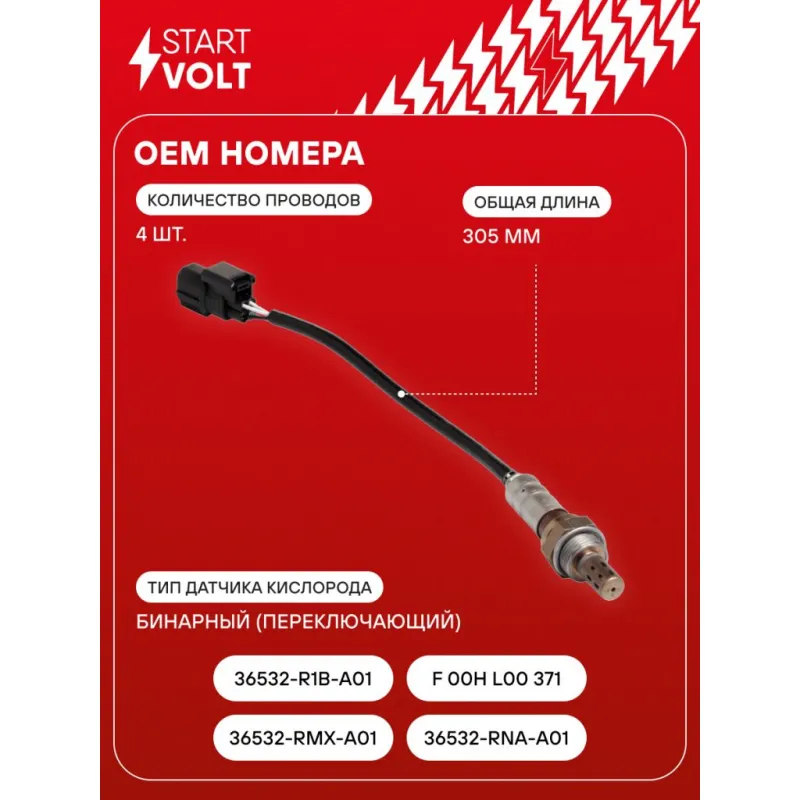 Датчик кислорода для автомобилей Honda Civic (06-) 1.8i/Accord (08-)/CR-V (07-) 2.0i после катализатора Характеристики: Артикул: VS-OS 23SA OEM номера: 36532-RMX-A01, 36532-RNA-A01, 36532-R1B-A01, F 00H L00 371 Количество на автомобиль: 1 Тип датчика кислорода: Бинарный (переключающий) Общая длина, мм: 305 Количество проводов: 4 Подходит для авто: Honda Civic VIII (06-), Accord (08-), CR-V III (06-), Civic IX (11-) Для проверки применяемости отправьте VIN автомобиля через вкладку "Есть вопросы о товаре?" Комплектация: Датчик кислорода - 1 шт Паспорт изделия/гарантийный талон - 1 шт Гарантия: от 1 года.
