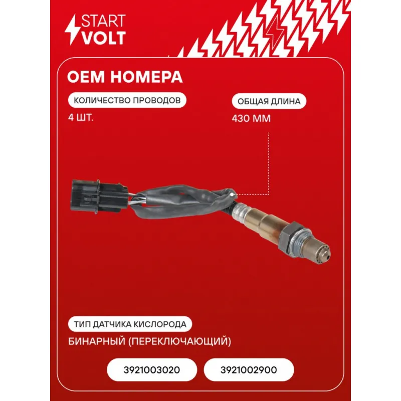 Датчик кислорода для автомобилей Hyundai Getz (02-) 1.1i/i20 (08-) 1.2i до катализатора Характеристики: Артикул: VS-OS 0823 OEM номера: 3921003020, 3921002900, 0258986649 Количество на автомобиль: 1 Тип датчика кислорода: Бинарный (переключающий) Общая длина, мм: 430 Количество проводов: 4 Подходит для авто: Hyundai i20 (08-), Getz (02-) Для проверки применяемости отправьте VIN автомобиля через вкладку "Есть вопросы о товаре?" Комплектация: Паспорт изделия/гарантийный талон - 1 шт Датчик кислорода - 1 шт Гарантия: от 1 года.