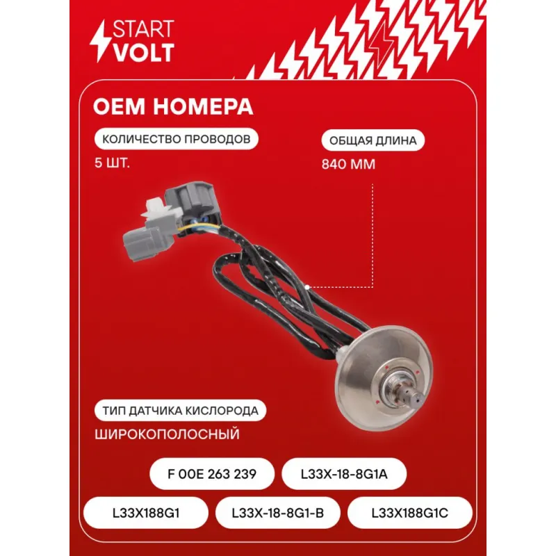 Датчик кислорода для автомобилей Mazda 3 (03-) 2.3i до катализатора Характеристики: Артикул: VS-OS 2532 OEM номера: L33X188G1, L33X-18-8G1-B, L33X188G1C, F 00E 263 239, L33X-18-8G1A Количество на автомобиль: 1 Тип датчика кислорода: Широкополосный Общая длина, мм: 840 Количество проводов: 5 Подходит для авто: Mazda 3 (03-) Для проверки применяемости отправьте VIN автомобиля через вкладку "Есть вопросы о товаре?" Комплектация: Паспорт изделия/гарантийный талон - 1 шт Датчик кислорода - 1 шт Гарантия: от 1 года.