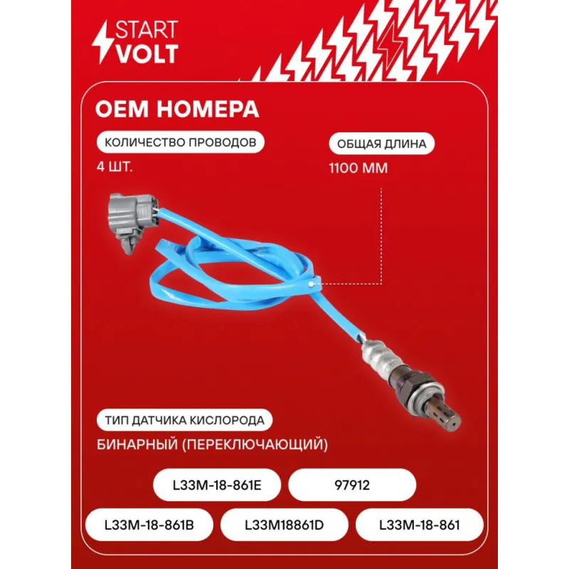 Датчик кислорода для автомобилей Mazda CX-7 (07-) 2.3T после катализатора Характеристики: Артикул: VS-OS 2500 OEM номера: L33M-18-861B, L33M18861D, L33M-18-861, L33M-18-861E, 97912 Количество на автомобиль: 1 Тип датчика кислорода: Бинарный (переключающий) Общая длина, мм: 1110 Количество проводов: 4 Подходит для авто: Mazda ... Читать полностью →