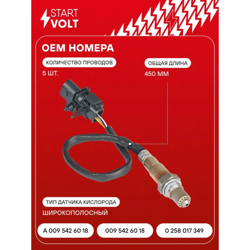 Датчик кислорода для автомобилей Mercedes-Benz E W212 (09-)/W213 (16-)/S W221 (05-)/GLK X204 (08-)/C W205 (14-) 2.0i-5.5i до катализатора Характеристики: Артикул: VS-OS 2202 OEM номера: A 009 542 60 18, 009 542 60 18, 0 258 017 349, 0 258 017 347 Количество на автомобиль: 1 Тип датчика кислорода: Широкополосный Общая длина, мм: 450 Количество проводов: 5 Подходит для авто: Mercedes-Benz C-class W205 (14-), E-Class W212 (09-), E-class W213 (16-), GLK X204 (08-), S-Class W221 (05-), S-Classe W222 C217 (13-) Для проверки применяемости отправьте VIN автомобиля через вкладку "Есть вопросы о товаре?" Комплектация: Паспорт изделия/гарантийный талон - 1 шт Датчик кислорода - 1 шт Гарантия: от 1 года.