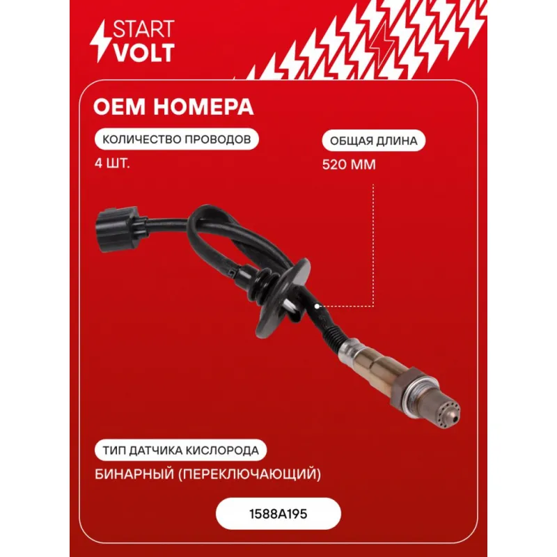 Датчик кислорода для автомобилей Mitsubishi Lancer X (07-) 1.5i после катализатора Характеристики: Артикул: VS-OS 1106 OEM номера: 1588A195, 0 258 010 024 Количество на автомобиль: 1 Тип датчика кислорода: Бинарный (переключающий) Общая длина, мм: 520 Количество проводов: 4 Подходит для авто: Mitsubishi Lancer X (07-) Для проверки применяемости отправьте VIN автомобиля через вкладку "Есть вопросы о товаре?" Комплектация: Датчик кислорода - 1 шт Паспорт изделия/гарантийный талон - 1 шт Гарантия: от 1 года.