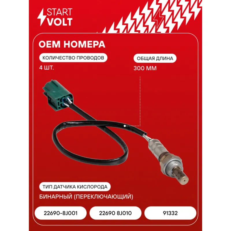 Датчик кислорода для автомобилей Nissan X-Trail T30 (01-)/Primera (02-) 2.0i до катализатора VS-OS 14BM StartVolt