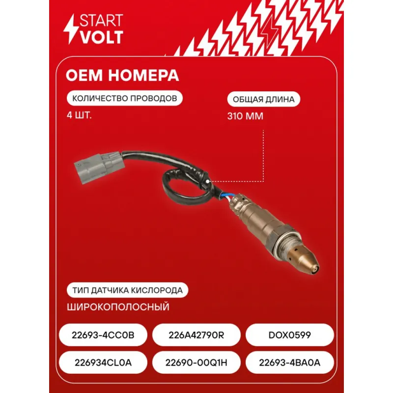 Датчик кислорода для автомобилей Nissan X-Trail T32 (13-) 2.5i до катализатора Характеристики: Артикул: VS-OS 1429 OEM номера: 226934CL0A, 22690-00Q1H, 22693-4BA0A, 22693-4CC0B, 226A42790R, DOX0599 Общая длина, мм: 310 Количество проводов: 4 Тип датчика кислорода: Широкополосный Количество на автомобиль: 1 Подходит для авто: Nissan X-Trail T32 (14-) Renault Master III (10-) Для проверки применяемости отправьте VIN автомобиля через вкладку "Есть вопросы о товаре?" Комплектация: Датчик кислорода - 1 шт Паспорт изделия/гарантийный талон - 1 шт Гарантия: от 1 года.