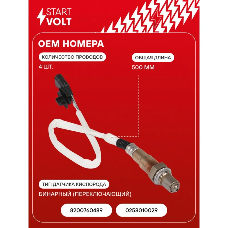 Датчик кислорода для автомобилей Renault Logan (09-)/Sandero (09-) 1.6i K4M после катализатора Характеристики: Артикул: VS-OS 0921 OEM номера: 8200760489, 0258010029 Количество на автомобиль: 1 Тип датчика кислорода: Бинарный (переключающий) Общая длина, мм: 500 Количество проводов: 4 Подходит для авто: Renault Sandero I (09-), Logan (08-) Для проверки применяемости отправьте VIN автомобиля через вкладку "Есть вопросы о товаре?" Комплектация: Датчик кислорода - 1 шт Паспорт изделия/гарантийный талон - 1 шт Гарантия: от 1 года.