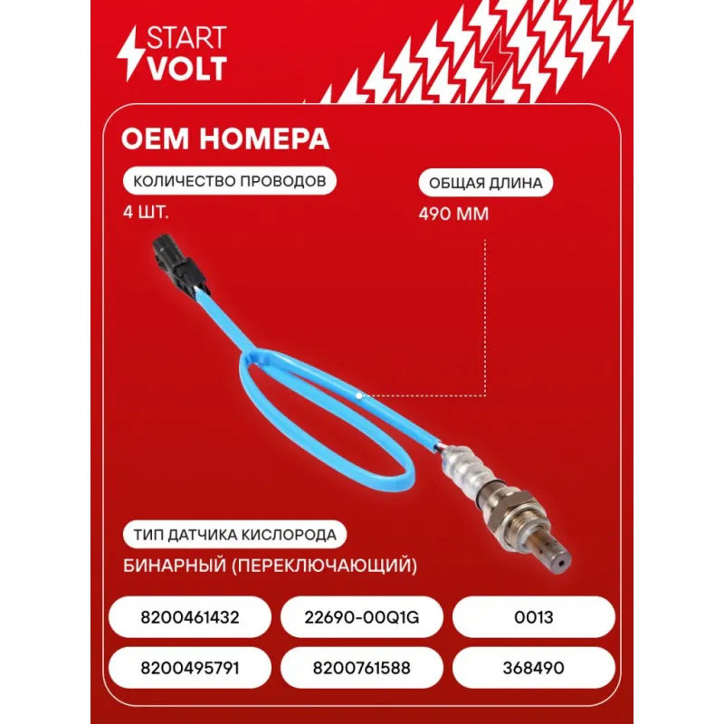 Датчик кислорода для автомобилей Renault Logan (09-)/Sandero (09-)/Duster (10-) 1.6i голубой провод Описание: Датчик кислорода VS-OS 0908 бренда STARTVOLT входит в состав системы управления двигателем внутреннего сгорания, представляет собой электронный датчик, который генерирует выходное напряжение постоянного тока в зависимости от изменения количества свободного кислорода, содержащегося в отработавших газах автомобильного двигателя. Тип датчика кислорода - Бинарный (переключающий); Применяемость кислородного датчика: DACIA SANDERO, LOGAN, DUSTER, NISSAN BLUEBIRD SYLPHY, TERRANO, RENAULT LAGUNA, DUSTER, LOGAN / STEPWAY, SANDERO / STEPWAY, CLIO, LOGAN, KAPTUR.. Подбор по VIN-номеру вашего автомобиля - через кнопку 'Задать вопрос'. Специалист проверит применяемость и ответит вам. Действие: - показывает уровень кислорода, топлива и продуктов сгорания их смеси; - измерение уровня кислорода в выхлопных газах; - помогает оптимизировать смесь так, чтобы увеличить эффективность сгорания топлива; - повышение эффективности работы двигателя; Пользуясь качественным датчиком кислорода от бренда STARTVOLT можно избежать дорогостоящих ремонтов и продлить срок службы двигателя. Характеристики: Артикул: VS-OS 0908 OEM номера: 8200495791, 8200761588, 368490, 8200461432, 0013, 22690-00Q1G Количество на автомобиль: 1 Подходящий разъем AIRLINE:: AECC025, AECC283, AECC257 Тип датчика кислорода: Бинарный (переключающий) Общая длина, мм: 490 Количество проводов: 4 Подходит для авто: Renault Kaptur (16-), Sandero I (09-), Sandero II (14-), Clio III (05-), Laguna III (07-), Duster (10-), Logan II (12-), Logan (08-) Nissan Terrano (14-), Almera G15 (12-) Для проверки применяемости отправьте VIN автомобиля через вкладку "Есть вопросы о товаре?" Комплектация: Паспорт изделия/гарантийный талон - 1 шт Датчик кислорода - 1 шт Гарантия: от 1 года.