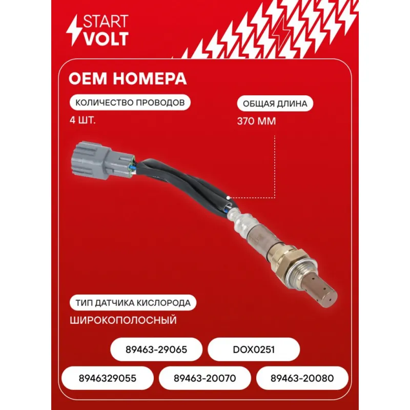 Датчик кислорода для автомобилей Toyota Avensis (97-)/Carina (92-) 1.6i до катализатора обедненной смеси Характеристики: Артикул: VS-OS 2811 OEM номера: 8946329055, 89463-20070, 89463-20080, 89463-29065, DOX0251 Общая длина, мм: 370 Количество проводов: 4 Тип датчика кислорода: Широкополосный Количество на автомобиль: 1 Подходит для авто: Mazda 3 (03-), 5 (05-) Для проверки применяемости отправьте VIN автомобиля через вкладку "Есть вопросы о товаре?" Комплектация: Металлический фланец - 1 шт Датчик кислорода - 1 шт Уплотнительная прокладка - 1 шт Паспорт изделия/гарантийный талон - 1 шт Гарантия: от 1 года.