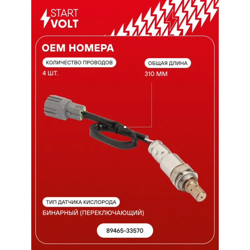 Датчик кислорода для автомобилей Toyota Camry V50 (11-) 2.0i после катализатора Характеристики: Артикул: VS-OS 2033 OEM номера: 89465-33570 Общая длина, мм: 310 Количество проводов: 4 Тип датчика кислорода: Бинарный (переключающий) Количество на автомобиль: 1 Подходит для авто: Kia Stinger (17-) Для проверки применяемости отправьте VIN автомобиля через вкладку "Есть вопросы о товаре?" Комплектация: Паспорт изделия/гарантийный талон - 1 шт Датчик кислорода - 1 шт Гарантия: от 1 года.