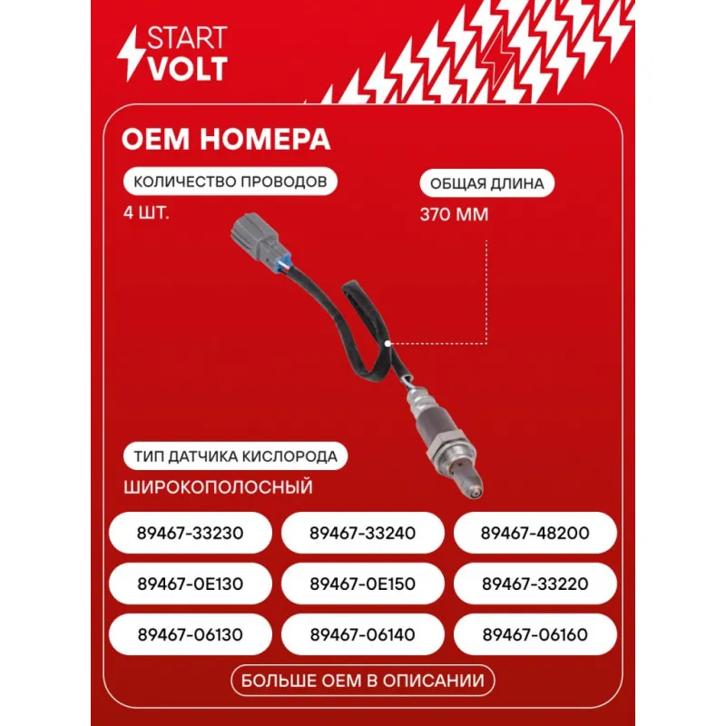 Датчик кислорода для автомобилей Toyota Camry V50 (11-)/Highlander (08-) 3.5i до катализатора 370 мм Характеристики: Артикул: VS-OS 1907 OEM номера: 89467-06130, 89467-06140, 89467-06160, 89467-0E130, 89467-0E150, 89467-33220, 89467-33230, 89467-33240, 89467-48200, 89467-48220, 89467-58060, DOX-0611 Количество на автомобиль: 1 Тип датчика кислорода: Широкополосный Общая длина, мм: 370 Количество проводов: 4 Подходит для авто: Toyota Camry (11-), Highlander (08-) Для проверки применяемости отправьте VIN автомобиля через вкладку "Есть вопросы о товаре?" Комплектация: Паспорт изделия/гарантийный талон - 1 шт Датчик кислорода - 1 шт Гарантия: от 1 года.