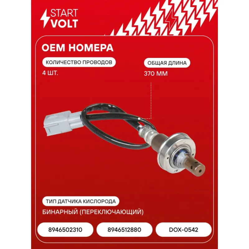 Датчик кислорода для автомобилей Toyota Corolla (06-)/Auris (07-) 1.6i до катализатора Характеристики: Артикул: VS-OS 1915 OEM номера: 8946502310, 8946512880, DOX-0542 Количество на автомобиль: 1 Тип датчика кислорода: Бинарный (переключающий) Общая длина, мм: 370 Количество проводов: 4 Подходит для авто: Toyota Corolla E150 (06-), Auris (06-) Для проверки применяемости отправьте VIN автомобиля через вкладку "Есть вопросы о товаре?" Комплектация: Датчик кислорода - 1 шт Паспорт изделия/гарантийный талон - 1 шт Гарантия: от 1 года.