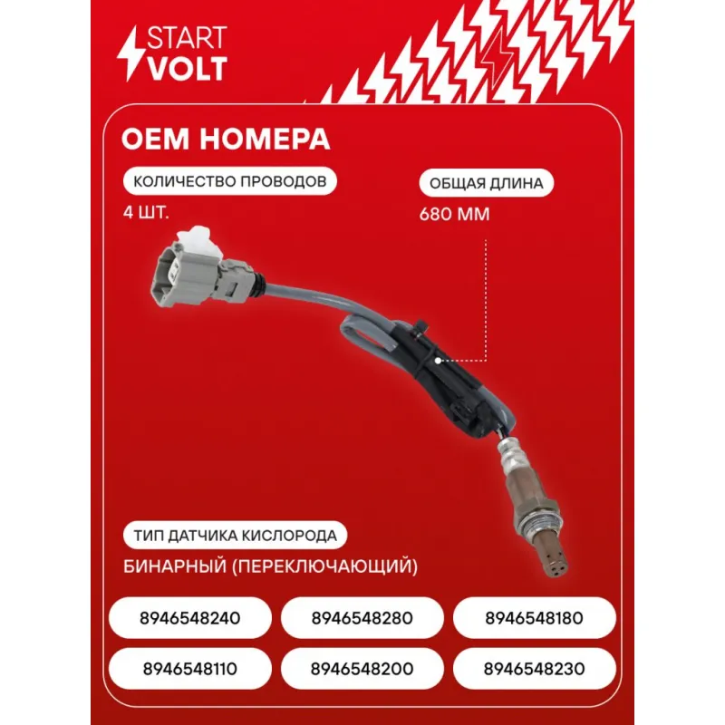 Датчик кислорода для автомобилей Toyota Highlander (08-)/Lexus RX (08-) 3.5i после катализатора Характеристики: Артикул: VS-OS 2107 OEM номера: 8946548110, 8946548200, 8946548230, 8946548240, 8946548280, 8946548180 Общая длина, мм: 680 Количество проводов: 4 Тип датчика кислорода: Бинарный (переключающий) Количество на автомобиль: 1 Подходит для авто: Toyota Highlander (08-), Highlander (01-), Harrier (03-) Lexus RX III (09-), RX II (03-) Для проверки применяемости отправьте VIN автомобиля через вкладку "Есть вопросы о товаре?" Комплектация: Датчик кислорода - 1 шт Паспорт изделия/гарантийный талон - 1 шт Гарантия: от 1 года.